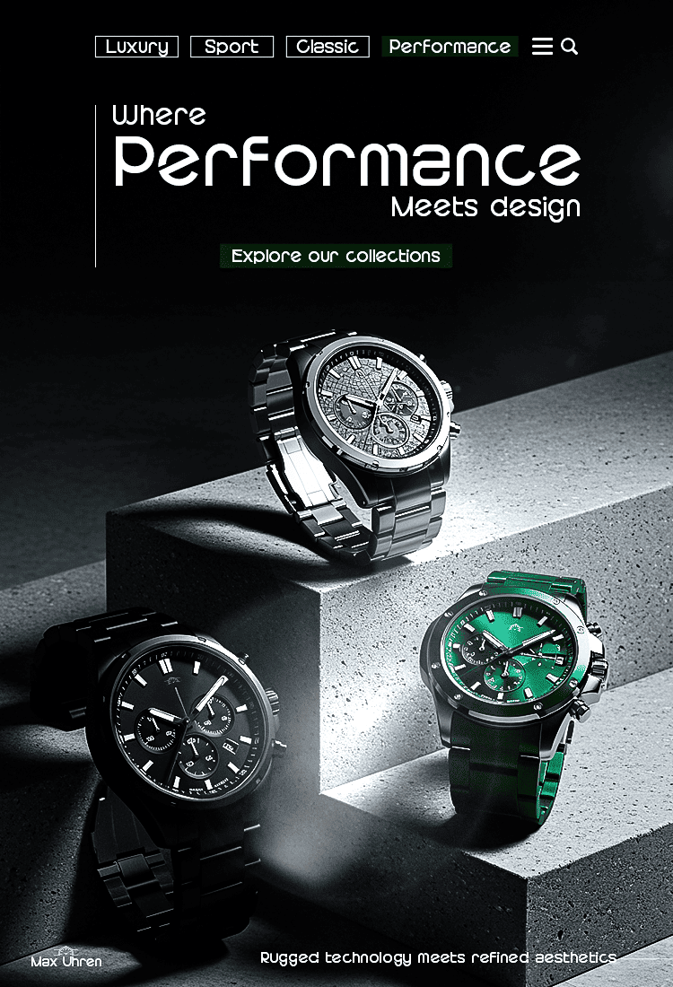 At Max Uhren, we curate exclusive, high-performance timepieces designed for individuals who demand precision and style. Our collections—from the robust Sport Watches and refined Luxury Watches to the engineered Smartwatches and timeless Classic designs—are crafted with premium expertise for those who live life with purpose. Don't just follow the time, command it.